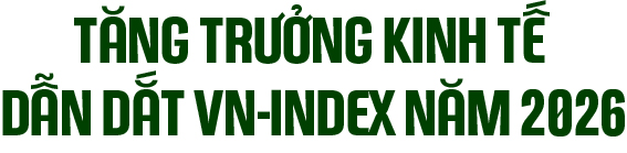 Bên cạnh câu chuyện nâng hạng thị trường, tăng trưởng kinh tế với mục tiêu GDP tham vọng 10% được dự báo là động lực chính dẫn dắt VN-Index trong năm 2026.