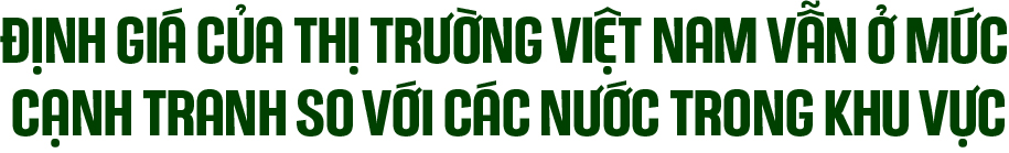Đáng chú ý, đà tăng của thị trường năm qua chủ yếu nhờ nhóm cổ phiếu Vingroup. Nếu loại trừ nhóm này, định giá chung của Việt Nam vẫn ở mức cạnh tranh so với các nước lân cận, củng cố sức hút đối với nhà đầu tư trong bối cảnh triển vọng kinh tế tích cực.