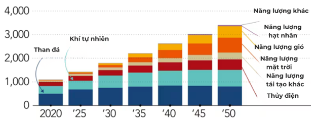 (Sản lượng điện dự kiến theo nguồn ở Đông Nam Á, tính bằng terawatt-giờ)