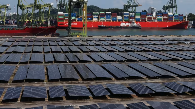 Một trang trại điện mặt trời tại nhà ga Keppel ở Singapore. Quốc đảo này đã trở thành một trong những bên ủng hộ mạnh mẽ nhất cho hoạt động mua bán điện trong khu vực. Ảnh: Reuters