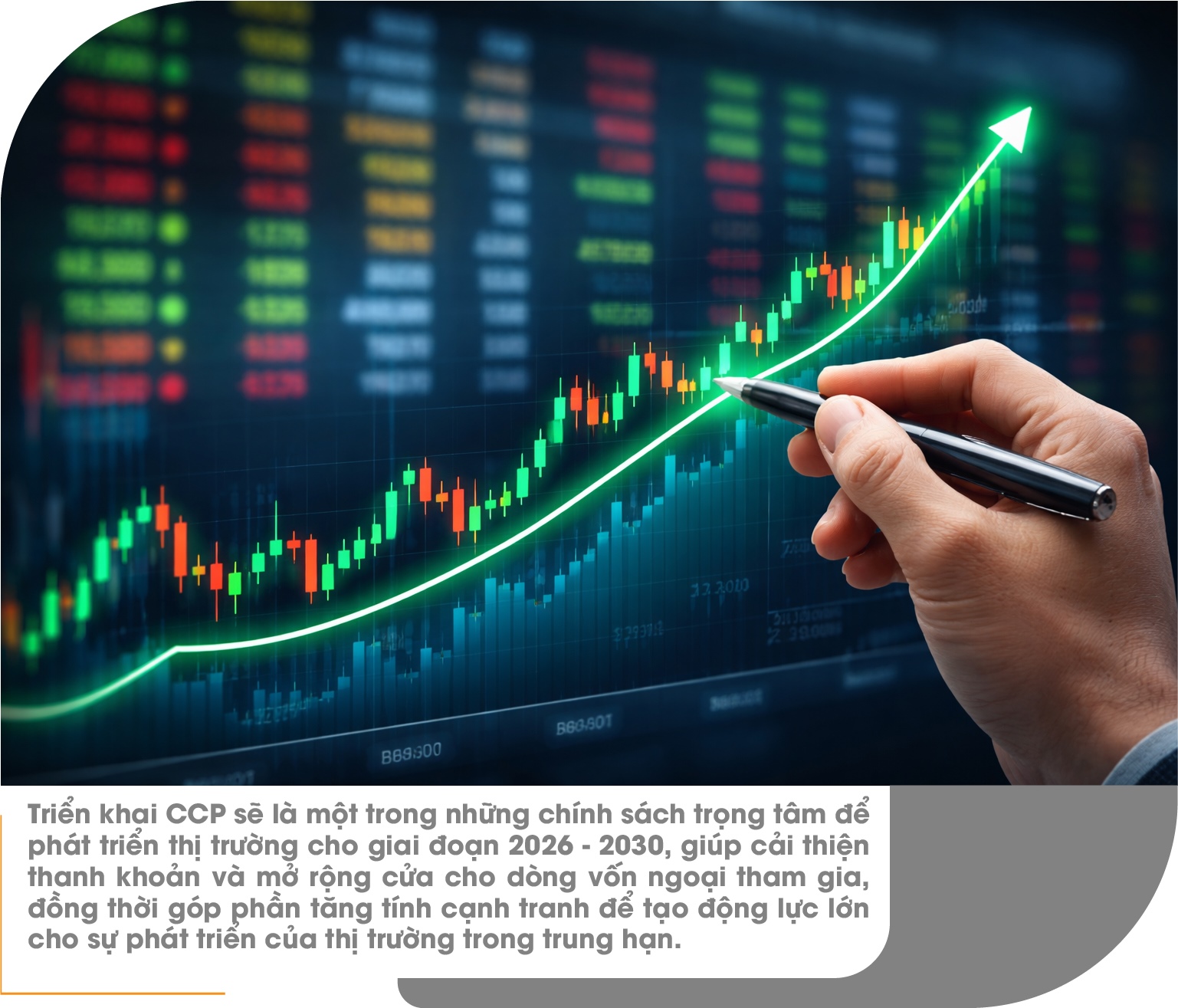 Về định hướng phát triển thị trường cho giai đoạn 2026 – 2030, ông Phương cho rằng việc triển khai giải pháp Đối tác bù trừ trung tâm (CCP) sẽ là một trong những chính sách trọng tâm. Nếu được quyết liệt triển khai, CCP sẽ có ảnh hưởng tích cực, giúp cải thiện thanh khoản và mở rộng cửa cho dòng vốn ngoại tham gia vào thị trường chứng khoán Việt Nam, đồng thời góp phần tăng tính cạnh tranh để tạo động lực lớn cho sự phát triển của thị trường trong trung hạn.