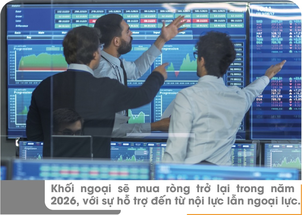 Sau năm 2025 tiếp tục phá kỷ lục bán ròng, hành động của khối ngoại trong năm 2026 quả thực là dấu hỏi lớn với nhiều nhà đầu tư. Theo quan điểm của ông Phương, khối ngoại sẽ mua ròng trở lại trong năm 2026, với sự hỗ trợ đến từ nội lực lẫn ngoại lực.