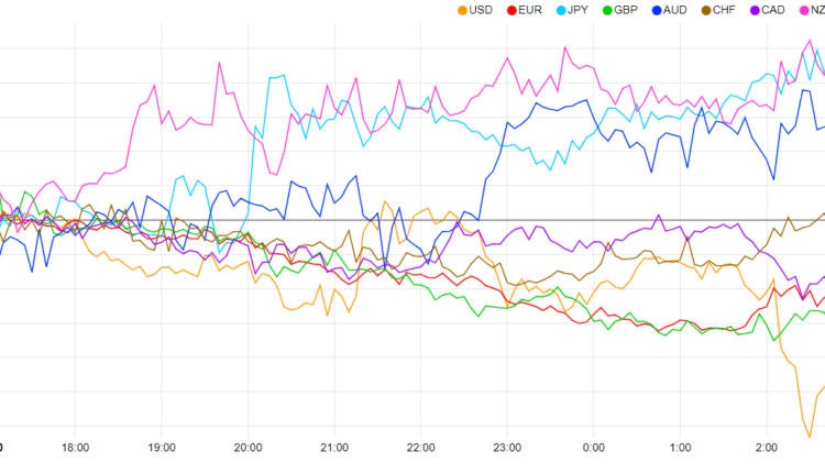 Currency Strength Chart: Strongest – NZD, Weakest – USD.