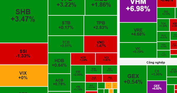 Diễn biến thị trường trong phiên chiều không có nhiều thay đổi, tiếp tục duy trì xu hướng tích cực từ phiên sáng. Ngoài sự hỗ trợ từ các cổ phiếu họ Vingroup, nhóm cổ phiếu ngân hàng cũng ghi dấu ấn với mức tăng đáng chú ý: CTG tăng 3,97%, VPB tăng 3,22%, và MBB tăng 1,86%. Các mã này đã góp phần củng cố đà tăng của VN Index, giúp chỉ số duy trì sắc xanh đến cuối phiên.