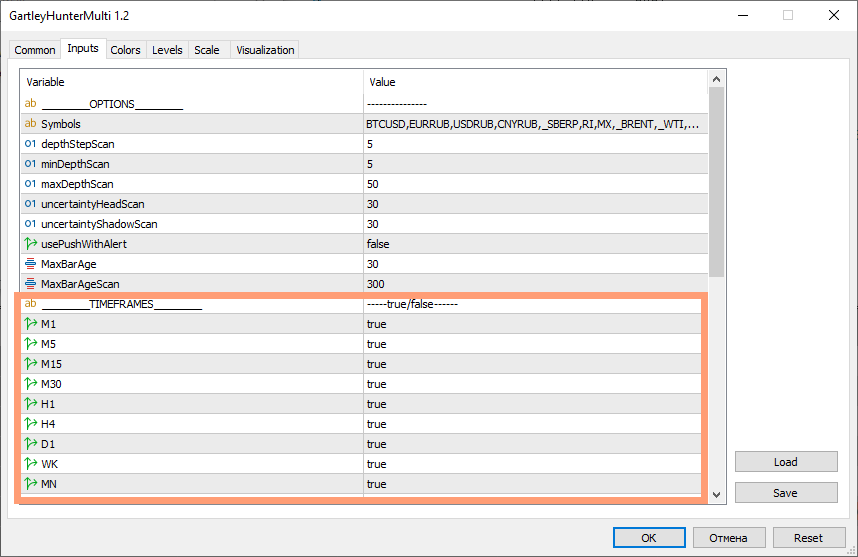 - “maxDepthscan” is responsible for the largest harmonic patterns. The default value is 30.