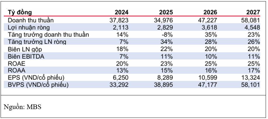 Năm 2026, MBS nhận thấy với sự hỗ trợ của chính sách linh hoạt thu mua mới, cùng với kỳ vọng lớn về việc PNJ giải quyết được bài toán nguyên liệu, nhờ vậy doanh thu trùng bình trên cửa hàng ước tăng 18% so với cùng kỳ.