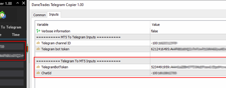 If you are copying signals from someone else’s Telegram they will need to give you their Bot Token. You can get the Chat ID by going to step 2. Get Telegram Chat ID. Below or ask the Telegram Owner. Copy these both into the Telegram to MT5 to get connected.