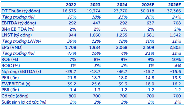 MAS dự báo doanh thu năm 2026 của TNG đạt 8,505 tỷ đồng (tăng 6.3%), còn chi phí SG&A năm 2026 sẽ tăng nhẹ do lạm phát. Theo đó, CTCK này dự báo lợi nhuận hoạt động và lãi sau thuế năm 2026 lần lượt đạt 470 tỷ đồng (tăng 12%) và 386 tỷ đồng (tăng 12%).