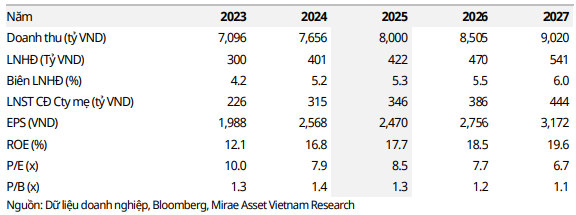 Với kết quả kinh doanh quý 3 đang đi đúng hướng, bên cạnh các điều kiện kinh tế vĩ mô và ngành thuận lợi, MAS duy trì dự báo doanh thu và lãi sau thuế năm 2025 lần lượt đạt 8,000 đồng (tăng 4.5%) và 345.7 tỷ đồng (tăng 9.8%).