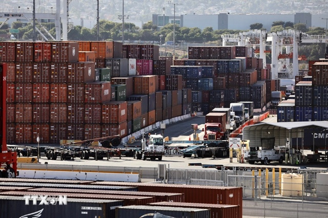 Quang cảnh cảng hàng hóa Los Angeles, California, Mỹ. (Ảnh: THX/TTXVN)
