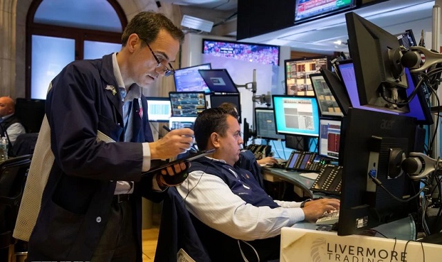 Giao dịch viên tại sàn chứng khoán New York, Mỹ. (Ảnh: THX/TTXVN)