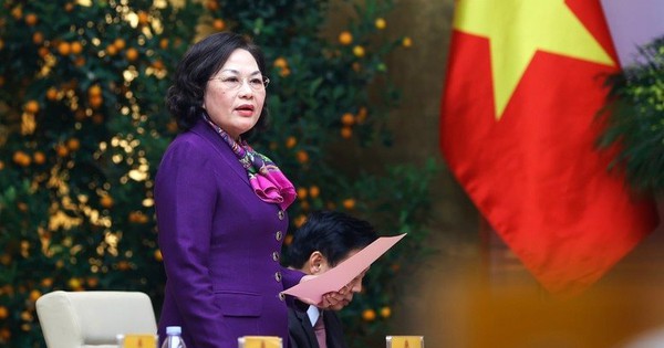Thống đốc NHNN Nguyễn Thị Hồng phát biểu tại Hội nghị Thường trực Chính phủ làm việc với các ngân hàng thương mại để tăng tốc, bứt phá, thúc đẩy tăng trưởng và kiểm soát lạm phát – Ảnh: Báo Chính phủ