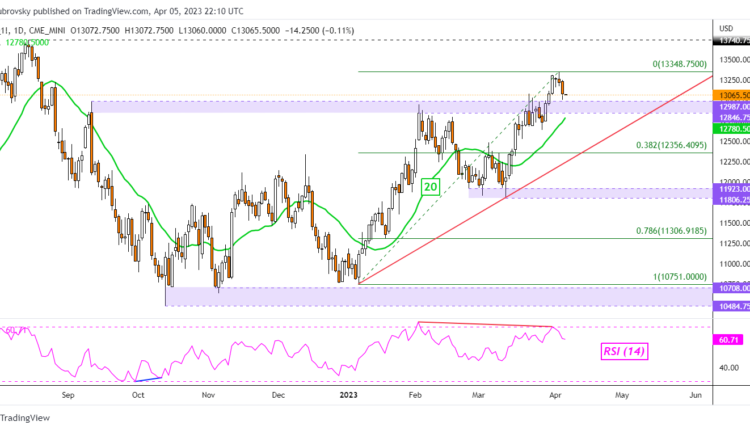 On the daily chart, the Nasdaq 100 is back to facing the 12846 – 12987 former resistance zone. It could hold as new support, pivoting prices higher and reinforcing this range as an inflection point. If not, extending lower would offer an increasingly near-term bearish technical bias. However, keep in mind that the rising trendline from January is maintaining the broader upside trajectory.