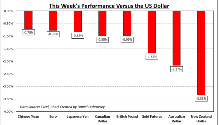 Global stock market sentiment mostly deteriorated this past week with a few exceptions. On Wall Street the tech-heavy Nasdaq Composite crushed its competition, soaring 2.51% while the blue-chip-oriented Dow Jones sank -1%. Across the Atlantic Ocean, the DAX 40 and FTSE 100 fell -1.79% and -1.67%, respectively. Meanwhile, the Hang Seng Index dropped almost 5%.