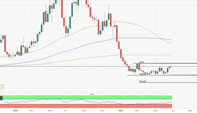 Given this level has not been breached yet, however, the downtrend remains intact and a break below the $2.110 year-to-date lows would provide a confirmation of a continuation down to a target at $1.546. This target is the 61.8% Fibonacci extension of the height of the roughly sideways consolidation range that has been unfolding during 2023.