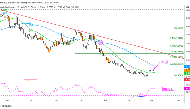 Natural Gas, Doji, Fading Momentum, Rising Wedge – Technical Update: