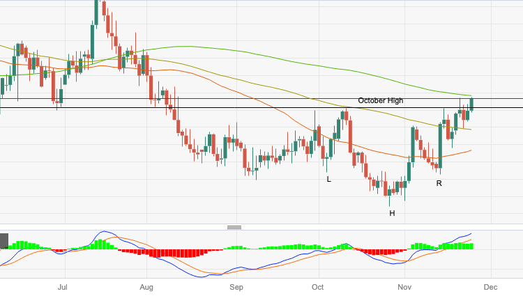 The New Zealand Dollar (NZD) has risen to a daily high against the US Dollar (USD) at 0.6087 late in the session on Friday. NZD/USD is holding onto a 1.6% weekly gain on Friday as the positive market mood continues and a new government assumes power in Wellington, bringing weeks of coalition talks to a conclusion.