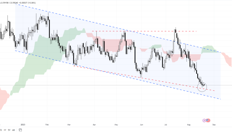 On technical charts, NZD/USD looks oversold as it tests support on a downtrend line from March, slightly above the bottom end of a downtrend channel from the beginning of the year. There is no sign of reversal yet, and NZD/USD would need to rise above the end-June low of 0.6050 for the immediate downward pressure to ease.
