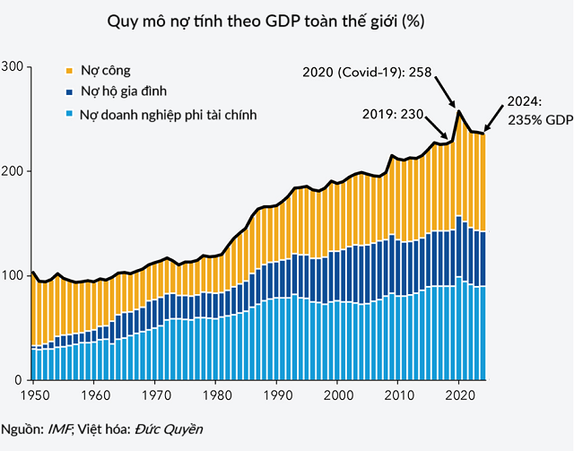 Nhật Bản có tỷ lệ nợ trên GDP lên tới hơn 250%. Tại châu Âu, các nền kinh tế lớn như Italy (gần 145%) và Pháp (115%) cũng đang chìm trong nợ.