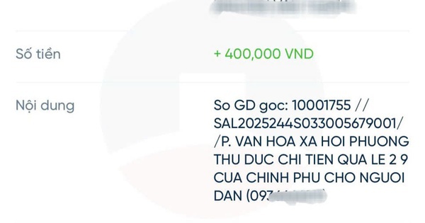 Theo ghi nhận của phóng viên Báo Người Lao Động, nhiều khách hàng của các ngân hàng cho biết đã nhận được tiền 100.000 đồng quà tặng chuyển vào tài khoản. Anh Nguyễn Thanh (ngụ phường Thủ Đức, TP HCM) cho biết trưa nay, tài khoản của anh mở tại VietinBank đã nhận được tổng cộng 400.000 đồng cho gia đình 4 người.