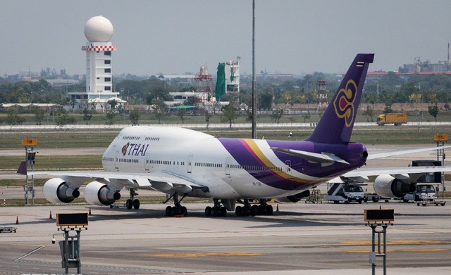 Máy bay của Thai Airways tại sân bay Suvarnabhumi ở Bangkok, Thái Lan. (Ảnh: AFP/TTXVN)