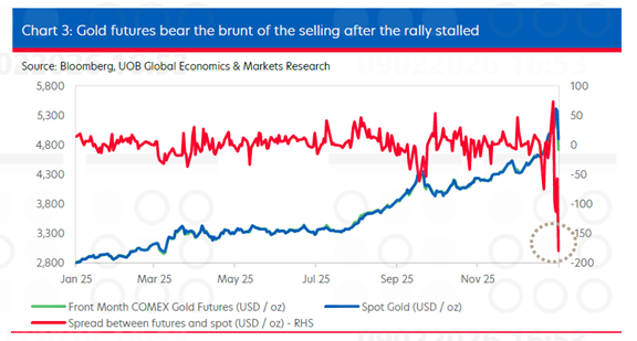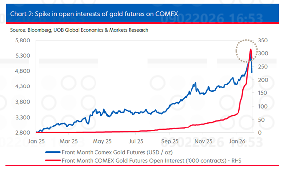 Trước đó, vào giữa tháng 1, nhằm giảm bớt mức độ biến động quá mức, COMEX đã thay đổi cách tính ký quỹ đối với vàng và kim loại quý, từ mức ký quỹ danh nghĩa cố định bằng USD sang tỷ lệ phần trăm trên giá trị hợp đồng. Quy định mới này được cho là đã kích hoạt thêm nhiều đợt thanh lý bắt buộc trong bối cảnh bán tháo. Do mức biến động tăng cao, ngày 30/01, COMEX tiếp tục thông báo nâng mức ký quỹ ban đầu và ký quỹ duy trì đối với hợp đồng tương lai vàng từ 6% lên 8%, có hiệu lực từ ngày 02/02. Thông báo tăng ký quỹ này càng làm gia tăng áp lực bán vàng, khi các vị thế mua yếu không thể đáp ứng yêu cầu ký quỹ cao hơn buộc phải đóng vị thế.