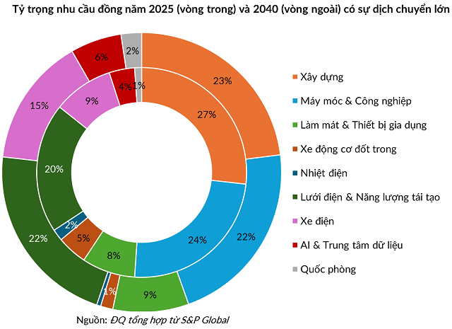 Giai đoạn 2025 – 2040, nhu cầu đồng được dự báo tăng từ 28 triệu tấn lên 42 triệu tấn.