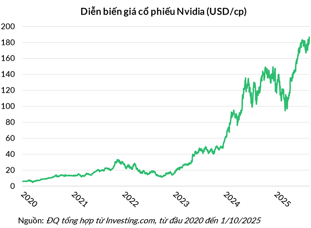 Khi cuộc cách mạng AI bùng nổ, thế giới đột nhiên nhận ra rằng kiến trúc xử lý song song của GPU, vốn được Nvidia thiết kế để xử lý đồ họa game phức tạp, lại hoàn hảo cho việc huấn luyện các mô hình AI khổng lồ. Kết quả kinh doanh của Nvidia cải thiện nhanh chóng nhờ nhu cầu cho AI, doanh thu năm tài khóa 2025 (kết thúc ngày 26/01) đạt 130.5 tỷ USD, tăng 114% so với năm 2024 và cao gấp 4.8 lần năm 2023. Lợi nhuận ròng nhảy vọt từ 4.4 tỷ USD năm tài khóa 2023 lên gần 73 tỷ USD năm 2025. Vốn hóa thị trường đi từ 2 ngàn tỷ USD vào tháng 6/2024 lên trên 4.5 ngàn tỷ USD vào tháng 9/2025.