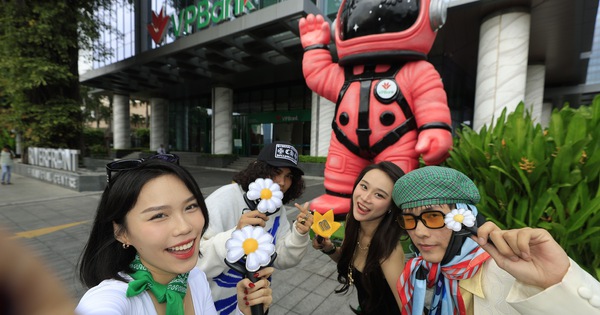 V-FAM háo hức check-in cùng phi hành gia hồng trước VPBank Flagship Hồ Chí Minh