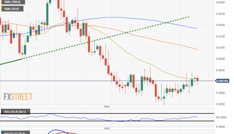 The NZD/USD is seeing mild consolidation on the hourly candles, and prices are cycling the 34-hour Exponential Moving Average (EMA) with technical support from the 200-hour Simple Moving Average (SMA) near 0.5935.