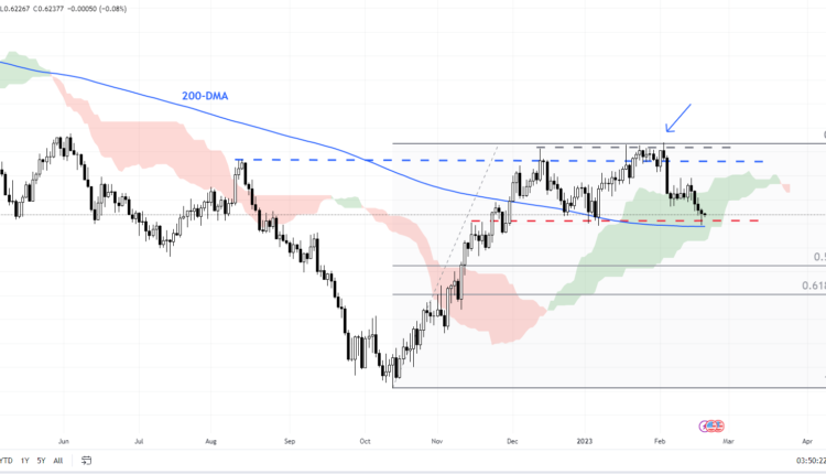 A break below 0.6190 would trigger a minor double top (the end-2022 and the January highs), potentially opening the door toward 0.5850. NZD/USD medium-term outlook has been improving since the fourth quarter of 2022, but the double top pattern, if triggered, would dent those improved prospects somewhat. Below 0.6190, there is support is at 0.6020 (the 50% retracement of the rise from 2022) and 0.5900 (the 61.8% retracement).