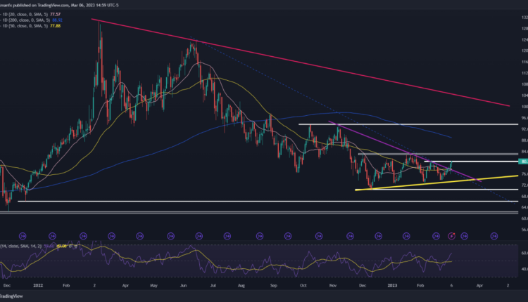 After recent gains, oil is trading near a key technical resistance in the $80.60 area, a ceiling created by February’s swing high. If bulls manage to drive prices above that barrier, buying interest could pick up momentum, setting the stage for a sprint toward the psychological $83.00 level. On the flip side, if sellers return and trigger a bearish reversal, initial support lies at $77.50. On further weakness, the focus shifts to a short-term rising trendline crossing the $73.60 region.