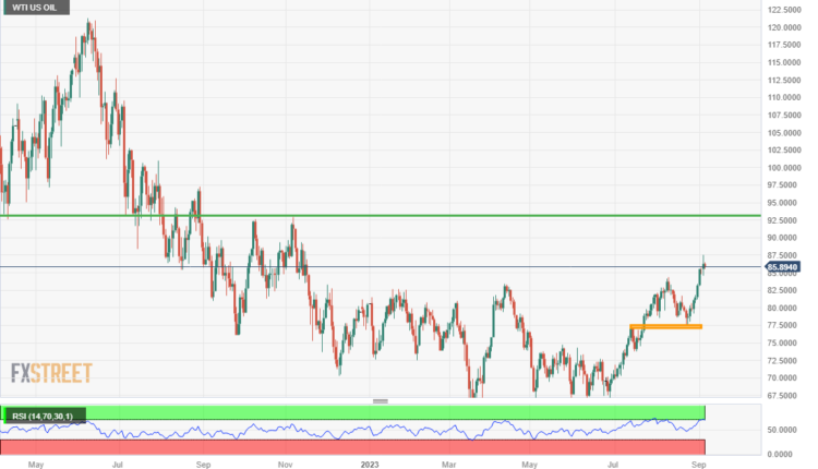 - Oil (WTI) takes a step back after hitting $87.50 on Tuesday.