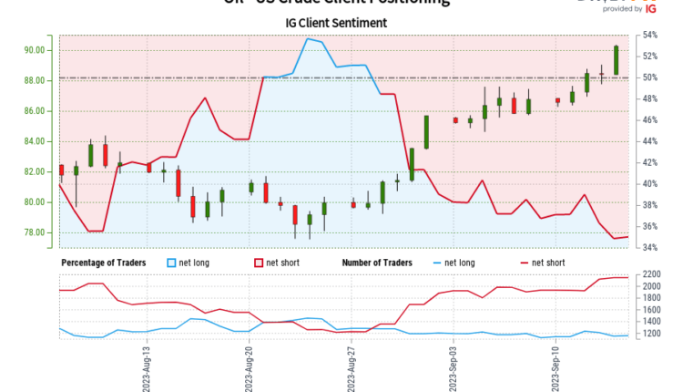 Oil – US Crude IG Client Sentiment: Our data shows traders are now at their least net-long Oil – US Crude since Aug 10 when Oil