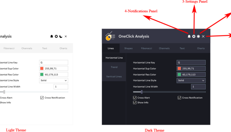This tool works by allowing you to quickly and easily draw technical analysis objects on your MetaTrader chart. To access the tool, simply press the “P” hotkey to show or hide the panel.