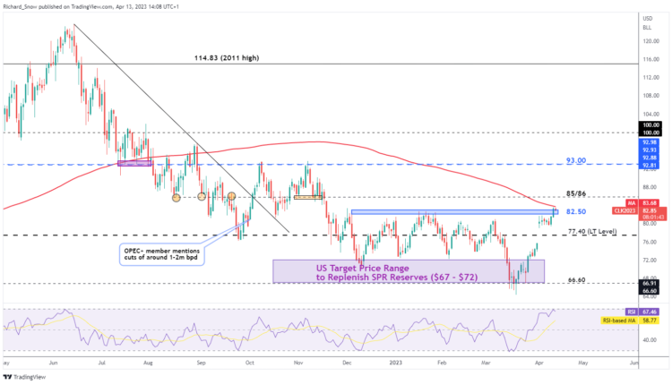 OPEC highlighted downside risks for oil prices due to continued restrictive interest rates and that such monetary policy could result in reduced oil demand in the summer months. The concerns around restrictive policy and the potentially negative effect on oil demand factored into the group’s thinking before it was decided on April 2nd that OPEC + would cut supply even further than previously agreed (2 million barrels per day).