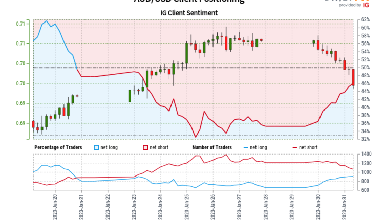 Our data shows traders are now net-long AUD/USD for the first time since Jan 20, 2023 when AUD/USD traded near 0.70.