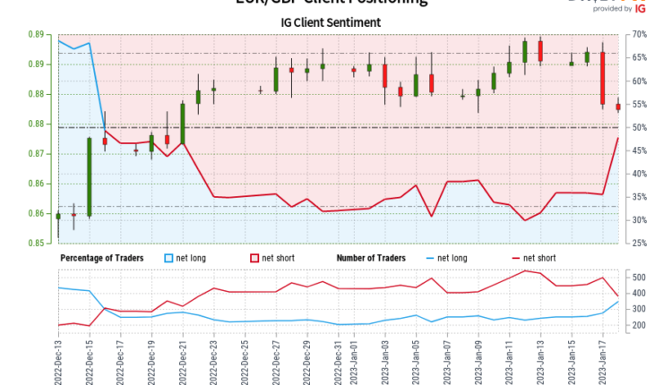 Our data shows traders are now net-long EUR/GBP for the first time since Dec 15, 2022 when EUR/GBP traded near 0.87.