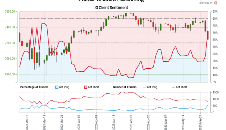 Our data shows traders are now net-long France 40 for the first time since Mar 15, 2023 when France 40 traded near 6,947.70.