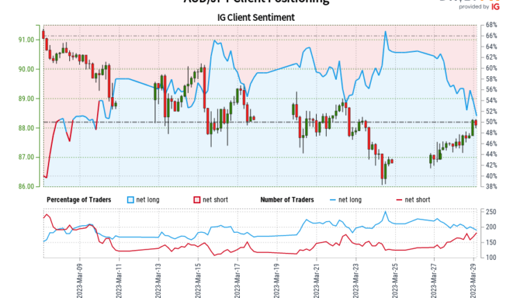 Our data shows traders are now net-short AUD/JPY for the first time since Mar 09, 2023 when AUD/JPY traded near 89.84.