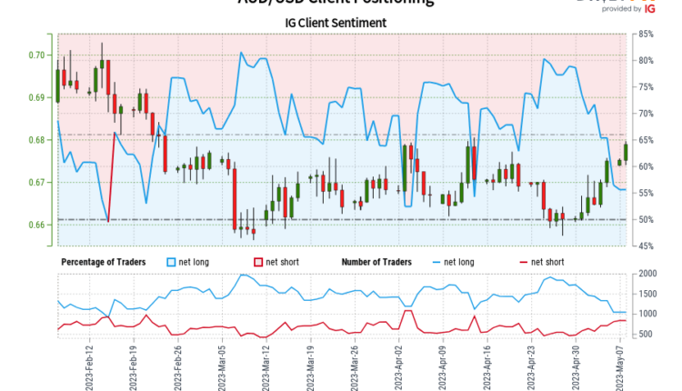 Our data shows traders are now net-short AUD/USD for the first time since Feb 15, 2023 when AUD/USD traded near 0.69.