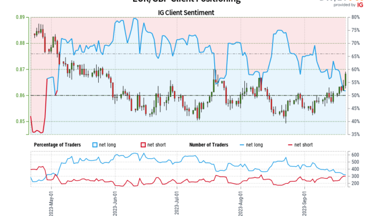 Our data shows traders are now net-short EUR/GBP for the first time since May 04, 2023 when EUR/GBP traded near 0.88.