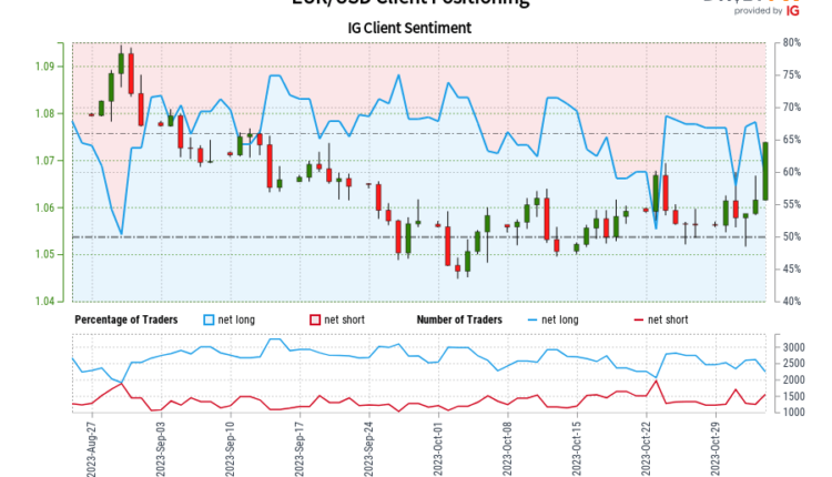 Our data shows traders are now net-short EUR/USD for the first time since Aug 30, 2023 when EUR/USD traded near 1.09.