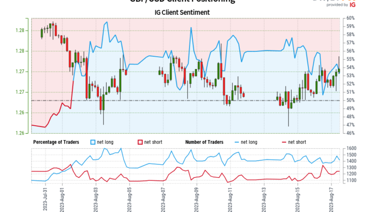 Our data shows traders are now net-short GBP/USD for the first time since Aug 01, 2023 when GBP/USD traded near 1.28. Traders are further net-short than yesterday and last week, and the combination of current sentiment and recent changes gives us a stronger GBP/USD-bullish contrarian trading bias.