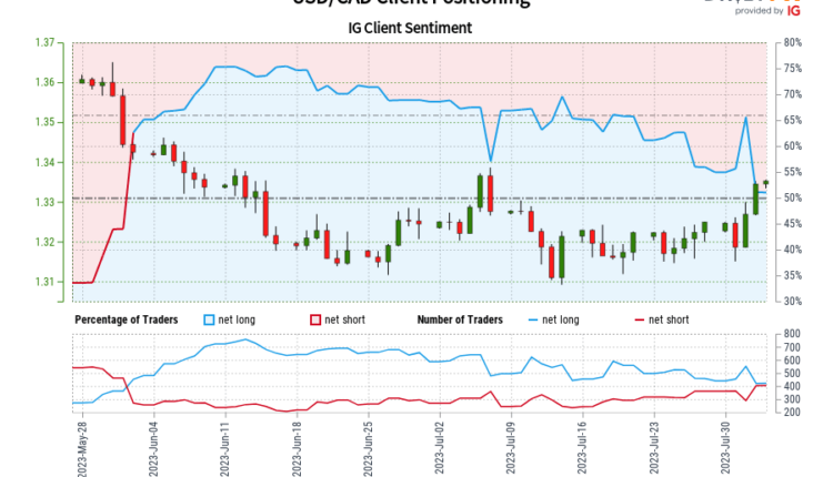 Our data shows traders are now net-short USD/CAD for the first time since Jun 01, 2023 when USD/CAD traded near 1.34.