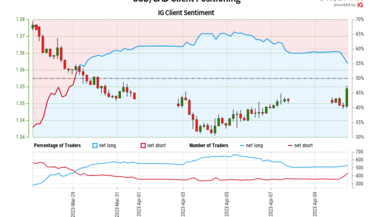 Our data shows traders are now net-short USD/CAD for the first time since Mar 29, 2023 when USD/CAD traded near 1.36.