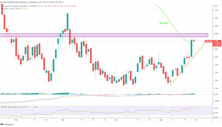 Though, a daily closing beyond $2.80 won’t hesitate to prod the March month high of $3.08. That said, the $3.00 psychological magnet may act as an intermediate halt between $2.80 and $3.08.