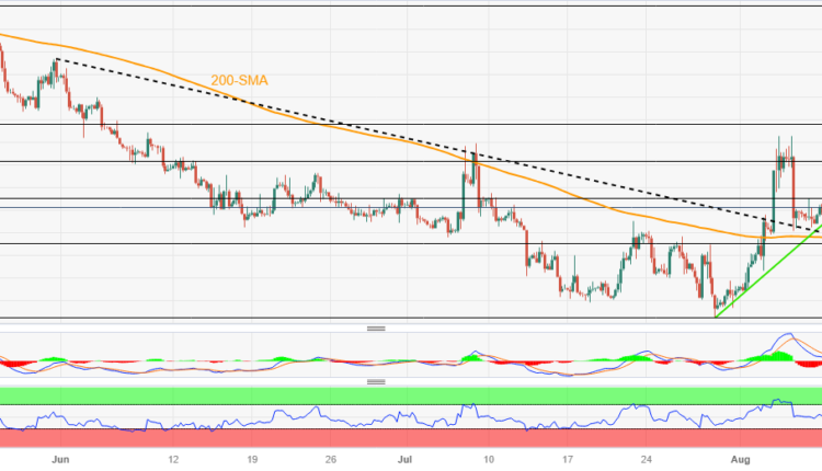 USD/MXN clings to mild gains around 17.11 as it defends late Tuesday’s corrective bounce off a one-week-long rising support line amid a sluggish start to Wednesday’s trading. In doing so, the Mexican Peso (MXN) justifies the market’s cautious mood ahead of Mexico’s headline inflation numbers for July, scheduled for release at noon per the GMT today.