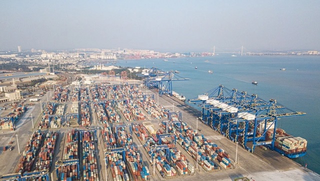 Quang cảnh cảng hàng hóa tại tỉnh Hải Nam, Trung Quốc. (Ảnh: THX/TTXVN)