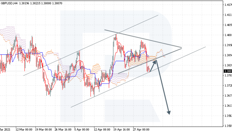 GBP / USD đang giao dịch ở mức 1.3807; công cụ đang di chuyển bên dưới Đám mây Ichimoku, do đó cho thấy xu hướng giảm dần. Các thị trường có thể chỉ ra rằng giá có thể kiểm tra biên giới đi xuống của đám mây ở mức 1,3865 và sau đó tiếp tục di chuyển xuống dưới để đạt mức 1,3565. Một tín hiệu khác ủng hộ một xu hướng giảm tiếp theo sẽ là sự phục hồi từ đường biên xuống của mô hình Tam giác. Tuy nhiên, kịch bản giảm giá có thể không còn hợp lệ nếu giá phá vỡ biên giới tăng của đám mây và cố định trên 1,3965. Trong trường hợp này, cặp tiền có thể tiếp tục phát triển về phía 1,4055. Để xác nhận sự sụt giảm tiếp theo, tài sản phải phá vỡ biên giới đi xuống của kênh tăng và cố định dưới 1,3770.